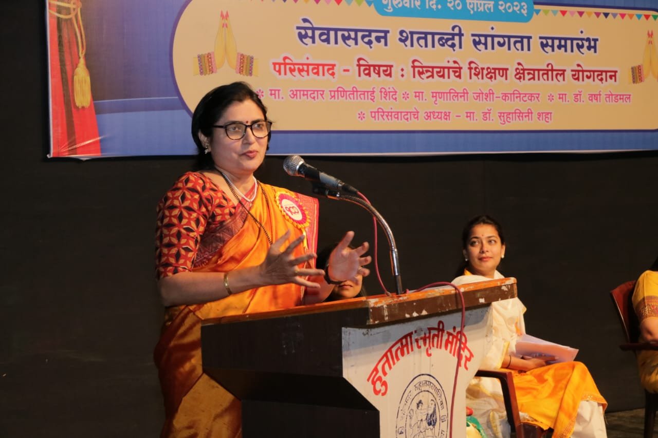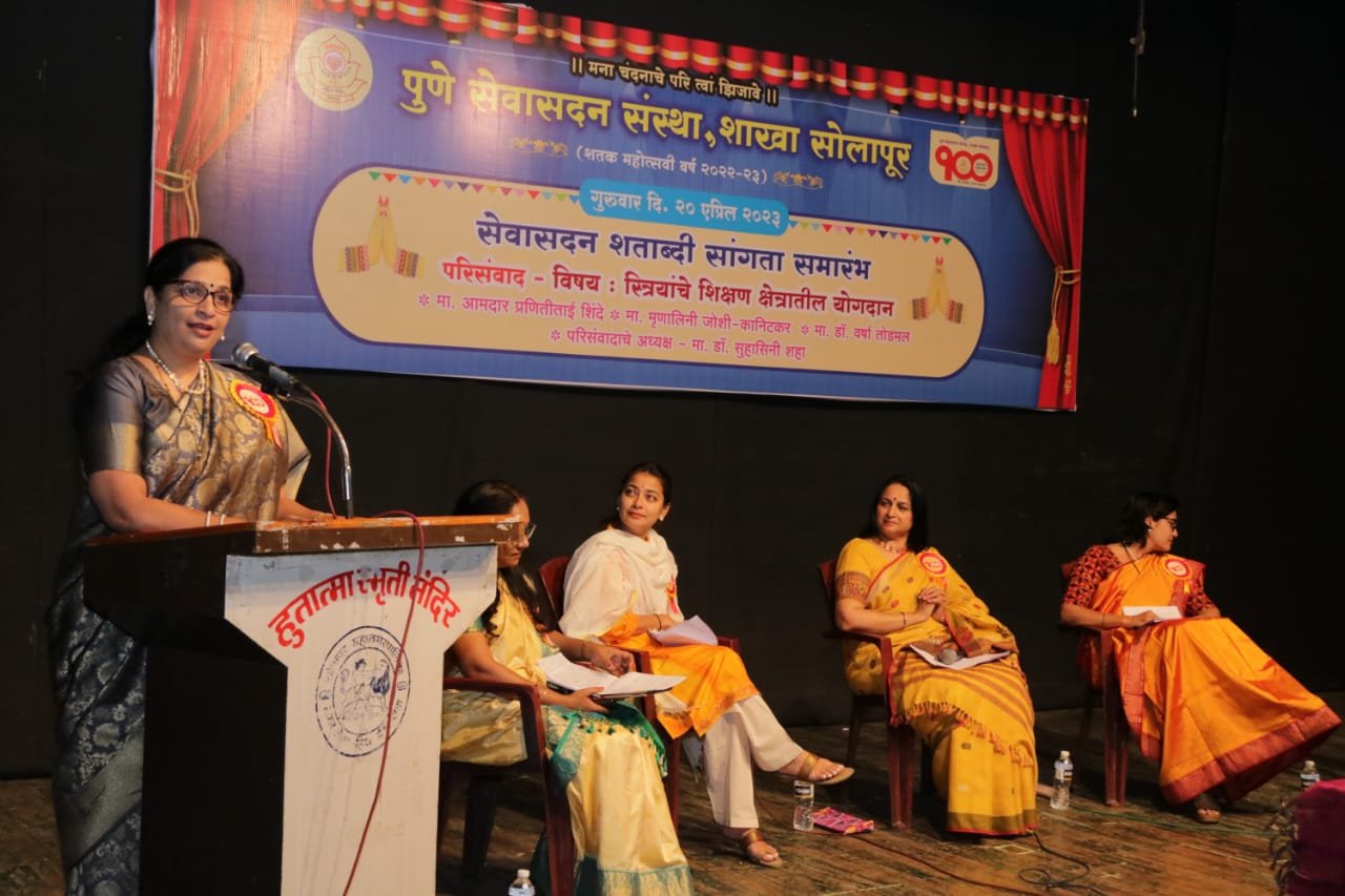 On 20th April 2023 at 5.00 PM a seminar on ‘Women’s Contribution to Education’ was held. Poet Dr. Varsha Todmal, Writer Mrinalini Joshi-Kanitkar, President of Precision Foundation Dr. Suhasini Shah and Pranititai Shinde shared their valuable thoughts. This conference was chaired by Dr. Suhasini Shah and interviewed by Dr. Priya Nighojkar. On 21 April 2023, the closing ceremony of the centenary year was celebrated with enthusiasm. On this occasion the former principal of the school Hon. Mrs. Sheela Pataki was honored with the Lifetime Achievement Award and Mrs. Vanmala Kinikar was honored with the Shatabdi Special Merit Award. President of Jnana Prabodhini Pune presided over this program. Girish Bapat. On this occasion, the president of Pune Sevasadan Society Hon. Varsha Paranjape, Vice President Hon. Mr. Nitin Lele, General Secretary Hon. Mr. Chintamani Patwardhan and president of Solapur branch Hon. Mrs. Sheela Mistry, Secretary Mrs. Veena Pataki, Director Dr. Shrikant Yelegaonkar, Dr. Rajiv Pradhan, Mr. Rajendra Gandhi was the prominent presence. On this occasion, a program of various performances was also held. Nandi started the program. The program concluded with Ramabai Ranade biopic, Yakshagana, followed by Shatabdi Gita.